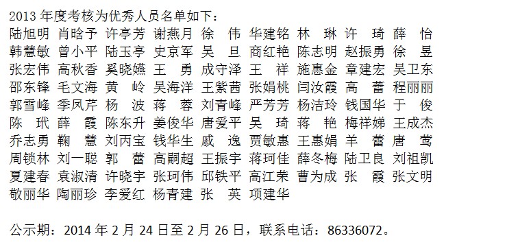 常州纺院2013年度考核公示