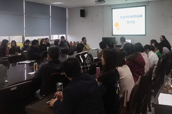 同日,服装学院启动了第一轮课程负责人说课研讨活动,服装学院党政及全体教师参加活动。服装陈列教研室王兴伟、染织艺术教研室张际仲和人物形象教研室许东春三位老师分别对《服装陈列设计Ⅰ》、《扎蜡染艺术》和《服装表演》三门课程,围绕“说地位、说目标、说内容、说学生、说设计、说教法、说成效”等进行说课交流。活动现场气氛热烈,与会教师们认真倾听,反响热烈,在交流互动中碰撞出许多思想的火花。服装学院副院长袁红萍对三位老师的说课表现进行了简要点评,就说课的基本环节要求及说课中如何体现“学生主体、教师主导”、“教学过程与生产过程对接”、“在专业教学中落实课程思政观,培养学生的综合素质和能力”、“建设完善课程资源,利用信息化手段改造传统课堂,提高教学效率”等提供了具体建议。