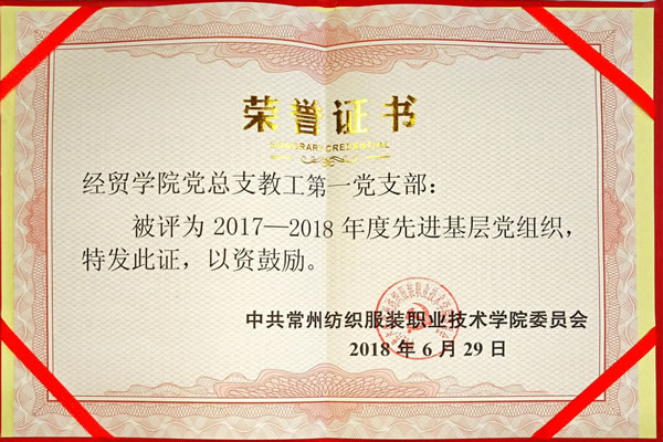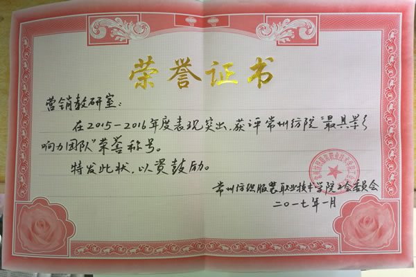 支部党员具有较强的集体主义观念与奉献精神,能够以大局为重,老党员能够率先垂范,年轻党员做到以身作则。在其影响与带动下,营销教研室2017年获常纺最具影响力团队;包忠明教授获得“常州市十佳文明职工”荣誉称号,陈璐获评为常州市“师德模范”,张茹获评为学校“师德先进个人”。