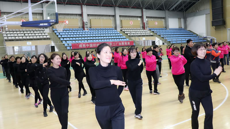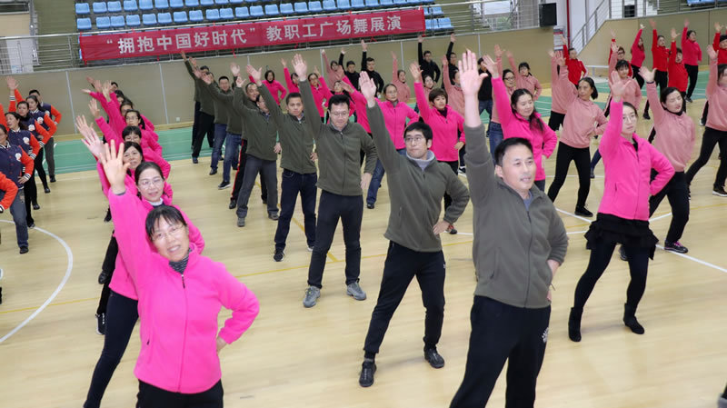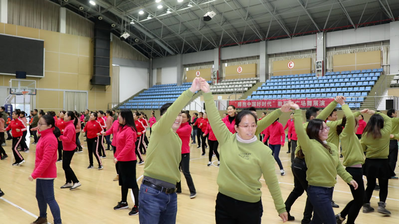 12月26日下午,校体育馆内,欢声笑语,其乐融融。学校工会举办的“拥抱中国好时代,拥抱常纺好时代”教职工广场舞表演赛在这里火热举行。