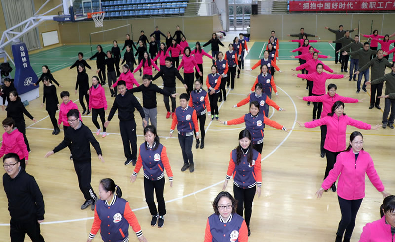 活动得到了全校8个分工会代表队的170余名教职工的积极参与。比赛中,他们身着统一队服,伴随着《拥抱中国好时代》欢快的节奏,以优美的舞姿,诠释了我校教职工的热情与活力。