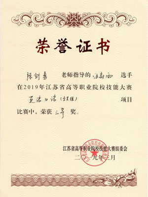 英语口语赛项是由江苏省教育厅主办、江苏省高等学校外国语教学研究会协办,旨在加快推进我省高等教育职业改革,不断提高学生英语口语运用能力,为经济建设和社会发展培养更多英语应用型人才。