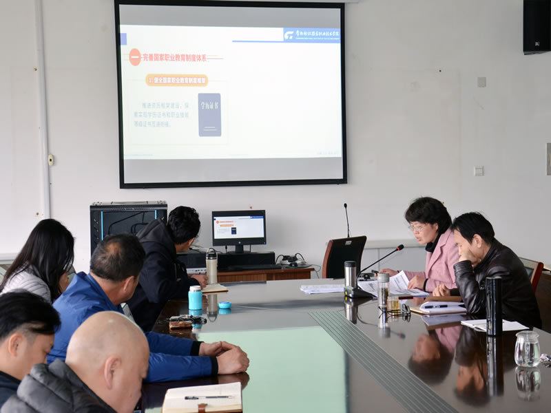 4月11日,服装学院组织全体教师,认真学习国务院印发的《国家职业教育改革实施方案》(职教二十条)。党总支书记张霞主持学习。