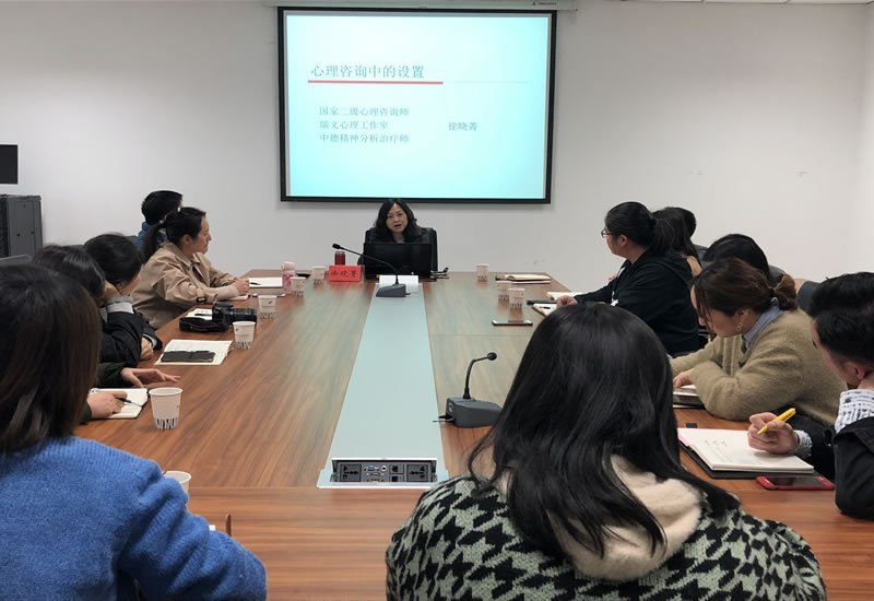 4月16日,应我校学工处大学生心理健康教育中心邀请,常州心理学会心理咨询专委会副秘书长徐晓菁在1629围绕“心理咨询设置”为我校专兼职心理咨询师作了一次专题培训。本次培训也是大学生心理健康中心“橙▪长基地”四级心理网络队伍提升班的第二次课程。