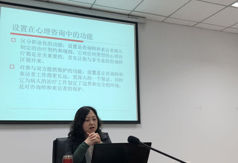 徐晓菁围绕设置的意义、设置的主要内容、心理咨询设置中呈现问题的意义、内在设置等进行了讲解,结合实际案例对培训的主题进行了细节注解。课程中,受训人员分享了各自的培训体会,就遇到的问题和积累的经验进行了探讨交流。