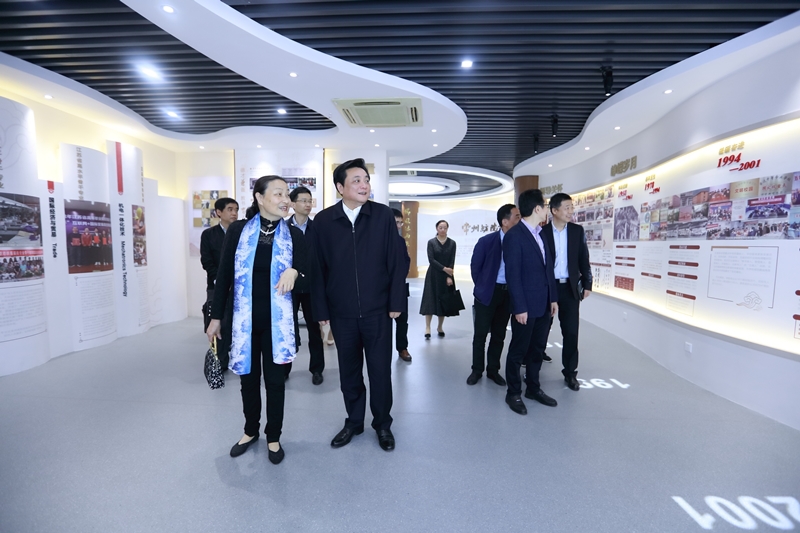 调研期间,韩九云一行首先考察了我校文化展示中心,先后参观了学校校史陈列馆、面料陈列馆、服饰文化馆(含京剧馆)、服饰品工作室、皮具设计工作室、时尚礼品设计工作室等场馆。结合各场馆及工作室建设,蒋心亚、洪霄向韩九云一行介绍了我校的办学情况、办学特色、人才培养、创新创业、校企合作与社会服务等情况。
