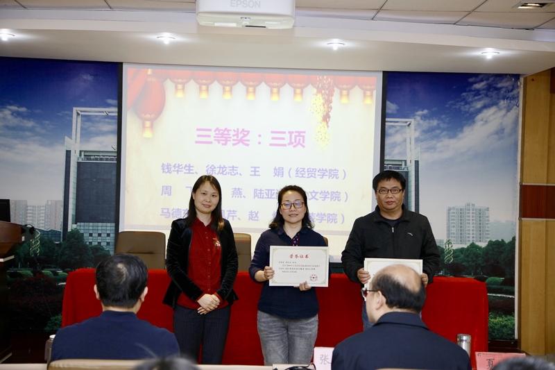 动员会上,夏冬宣读了2018年省信息化大赛获奖名单,张文明、顾剑柳和陶丽珍分别向获奖教师颁发了证书。2018年国赛一等奖获奖团队代表李蔚老师作了成功经验分享。她用“沉淀”、“坚持”、“团队”、“出彩”四个关键词,总结了2018年全国职业院校教学能力比赛的参赛经验,并鼓励备赛老师们主动搭建团队,全力投入,坚持不懈,从而在大赛中获得成长。