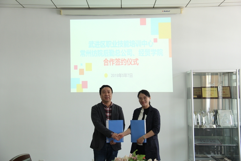 2019年5月7日上午10:00,经贸学院与常州市武进区职业技能培训中心签订合作办学协议,签约仪式由经贸学院院长余志军主持。武进区职业技能培训中心的副主任钱小花、科长蒋小飞、后勤服务总公司的领导和专家以及经贸学院全体党政领导参加签约仪式。