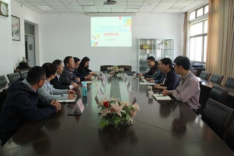 武进区职业技能培训中心隶属于武进区人力资源和社会保障局,系全民事业单位。中心教学设施完备、培训理念先进、服务质量优良,是集培训、就业、考试于一体的培训机构。此次与我院合作办学的主要项目是失业人员再就业培训和农村劳动力技能培训,双方就今后共同招生、合作培养等问题进行了深入广泛的交流。