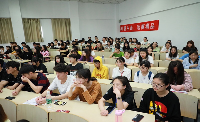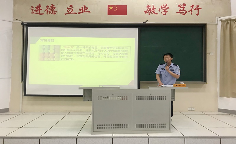吴伟从禁毒形式报告、认识毒品和远离毒品三个方面向学生传达了禁毒状况、毒品知识以及毒贩的伎俩,要求大学生要建立防毒拒毒意识,保持健康心理,接受禁毒教育,遵守行为规则,远离毒品,健康生活,做积极、健康、向上的新时代青年。