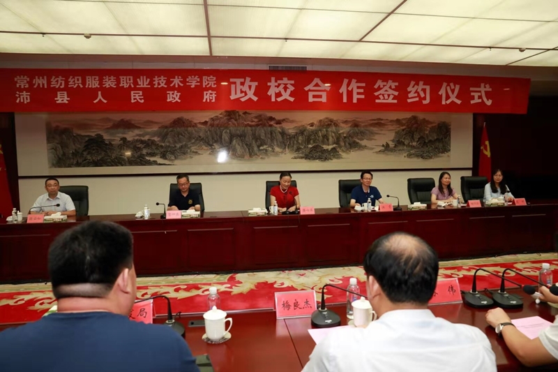 蒋心亚介绍了学院的发展情况并表示与沛县的合作,是纺织产业新兴集群地与省内老牌的以纺织服装为主打专业的高职院校的强强联手,南北呼应,有着广阔的合作空间。在坚定秉持“优势互补、平等互利、协作创新、共同发展”的原则下“遇事互商,人员互派,基地互建,课程互嵌,学生互招,项目互融”,并按照“合作办学、合作育人、合作就业、合作发展”的思路,推进“职教20条”,深化产教深度融合,不断提升合作层次。