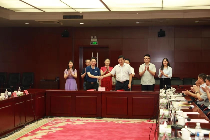 洪霄与沛县副县长梅良杰签订政校合作协议。