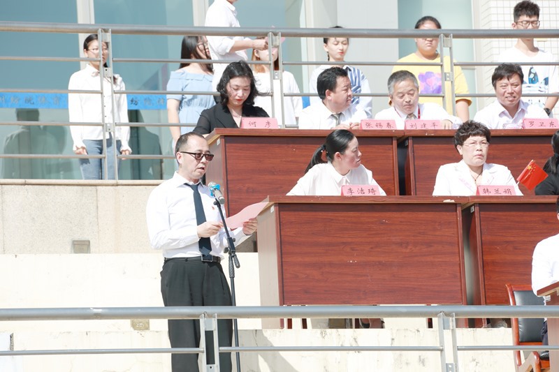 庄严的升旗仪式拉开了典礼帷幕,全体师生共唱国歌,向国旗敬礼。
