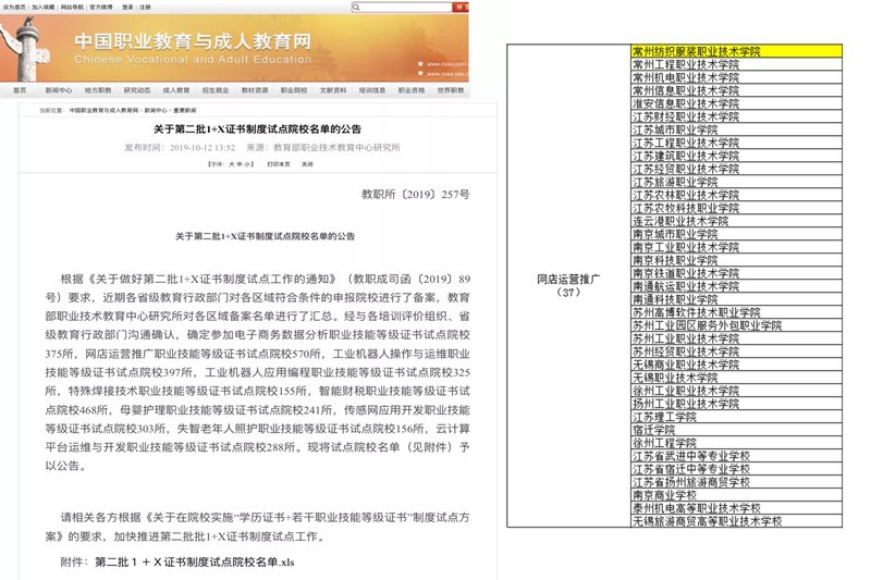 10月12日,教育部第二批“1+X”证书制度试点院校名单公布,我校成功入选“网店运营推广职业技能等级证书”试点。经贸学院电子商务专业将根据职业技能等级标准和专业教学标准要求,在专业人才培养方案修订、课程设置和教学内容优化、实训条件改善、师资队伍建设、教学资源开发、培养培训模式改革等方面积极开展研究和实践探索,使该试点工作能尽快稳步推进。下一步,将根据教育部《关于在院校实施“学历证书+若干职业技能等级证书”制度试点方案》要求,落实细化方案,加快推进试点工作,将“1+X”证书制度试点与专业建设、课程建设、教师队伍建设等紧密结合,并进一步深化复合型技术技能人才培养培训模式和评价模式的改革,真正推进“1”和“X”的有机衔接。