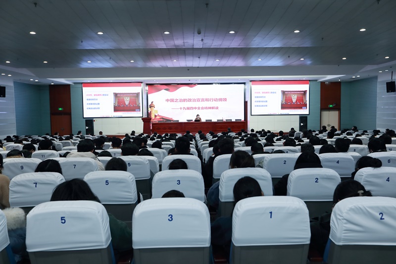 这次宣讲会是学校党委结合“不忘初心、牢记使命”主题教育,深入学习宣传和贯彻落实好十九届四中全会精神的新举措。蒋教育长围绕核心词“中国之治”,介绍了党的十九届四中全会召开的重要意义背景,分析了《决定》的内容结构,重点讲解了决定中的“守正创新”,脉络清晰、联系实际、结合历史,深入浅出。对全校上下准确理解和全面把握党的十九届四中全会精神和推动学校高质量发展具有指导性意义。