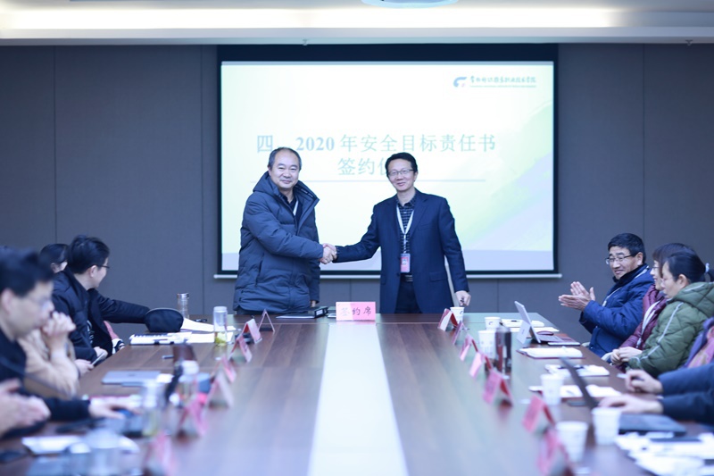 洪霄院长代表学校作了2019年度学校安全工作报告,他从“高度重视,层层落实工作责任”、“汲取教训,及时贯彻上级有关要求”、“完善机制,狠抓安全制度建设”、“完善安防,努力提升安全管理水平”、“专项治理,有效打击违法违纪行为”、“研判舆情,加强意识形态领域工作”、“危机干预,强化学生心理健康教育”和“严格检查,做好食品卫生防范工作”等八个方面对学校2019年度安全工作做了全面总结,指出了工作的不足,提出了2020年工作展望。会上洪霄代表学校与部分二级学院、职能部门负责人签订了“2020年度安全目标责任书”。学校后勤管理处、实训中心和机电学院负责人作为职能部门和二级学院代表分别就本部门2019年度如何做好安全工作作了交流发言。