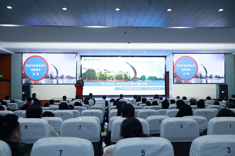 随后,党委书记蒋心亚作2019年度党委领导班子述职报告、干部选拔任用工作报告和个人述职报告。院长洪霄作学校行政领导班子述职报告。