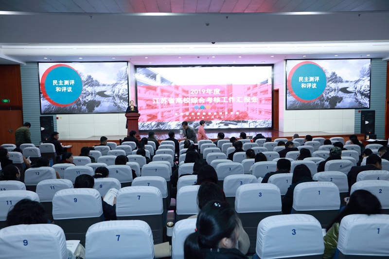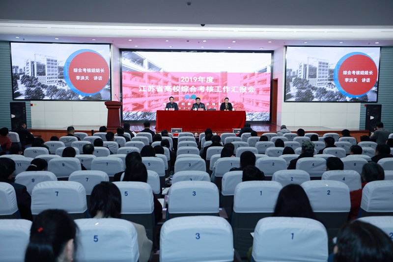 根据省考核委统一安排,1月7日上午,我校在报告厅召开2019年度综合考核工作汇报会。省第十一综合考核组第一考核小组组长、江苏第二师范学院原党委书记李洪天,联络员、省委组织部组织二处二级调研员余祥明,省委组织部干部五处一级主任科员方元庆,江苏联合职业技术学院副院长、党委委员杨晓华,省教育厅监督与审计处四级调研员凌昌满,省教育考试院办公室文秘科副科长吴 铭全体成员到会指导。学校党政领导班子成员、纪委委员、中层干部、区级以上党代表、人大代表、政协委员,民主党派负责人、具有高级职称的专业技术人员代表、基层代表参加会议。会议由党委书记蒋心亚主持。
