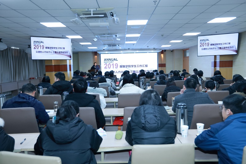 会上,学工处处长李洁琦做了题为《立德树人 为生服务 充分发展 人人出彩》的工作总结,她 从一个“中心”、两个“服务”、三项机制、四大育人平台、“五彩”主题活动、六大育人途径等六个方面全面总结回顾了2019年的学生工作并提出了2020年学生工作思路。2019年学生工作处(部)在学校党委的正确领导下,深入学习贯彻党的十九大和习近平总书记系列重要讲话精神,深刻领会全国高校思政工作会议精神,坚持立德树人根本任务,深入分析当前学生思想政治教育工作现状、面临的新形势与任务,适应学校内涵建设,科学谋划全年学生工作,落实落细我校“十三五”规划和第二次党代会精神,践行“以学生为中心”的育人理念,不断提升学生工作质量,促进学生的充分发展,让每一位学生都有人生出彩的机会。全体学工人员恪尽职守谋发展,创新机制强服务,成果丰硕,成绩斐然,斩获多项荣誉,多项特色工作在江苏教育报等省级媒体广泛宣传。