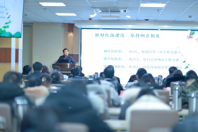 在听取了所有汇报之后,洪霄院长作具体点评并作总结讲话。他肯定了学生工作队伍的工作和取得的成绩,感谢各职能部门的帮助支持和学生工作一线各位老师的辛勤付出。“师者,所以传道受业解惑也。”洪院长引经据典,强调教师不能只授业,更要育人,面对高职学生的特点,全体学生工作人员要树立目标,勠力同心,踏实践行,坚持立德树人,因材施教,促进学生的充分发展。