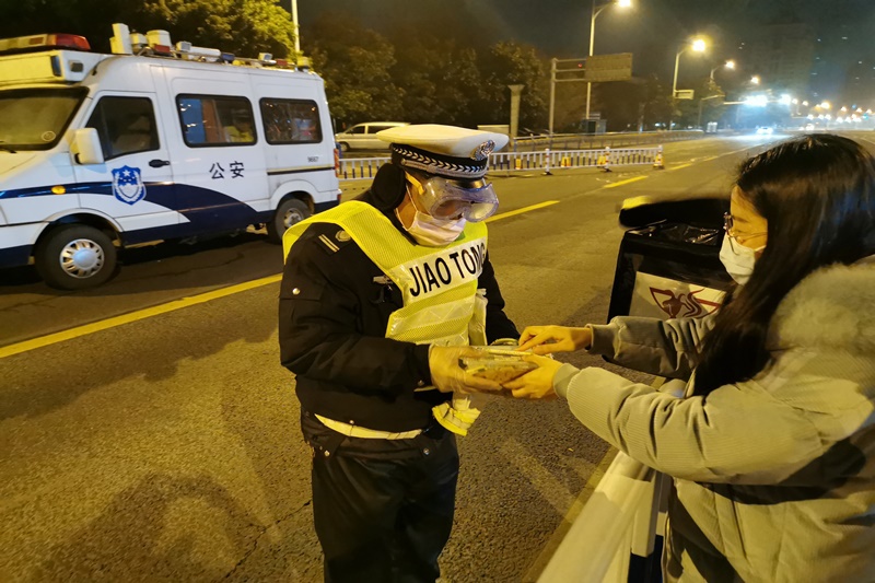 凌晨1点,杨萍夫妻把最后一份羊汤面送到常州疫情防控一线312国道路面检查点的执勤同志手中,结束了当天15个免费送餐点,共计220份的公益送餐。朋友圈、微信群中“感谢热心市民送来的夜宵,暖身又暖心”、“感谢热心市民为我们一线人员送来热腾腾的羊肉面,有你们真好,为你们点赞”、“谢谢你们的关心与支持,警民是一家,众志成城”的留言让他们感到欣慰,能够为深夜奋战在疫情防控工作第一线的医护人员、特警、交警、社区工作人员、志愿者送上一点点爱心,为常州疫情防控作出一点点力所能及的贡献,是他们作为一名党员的动力与使命。