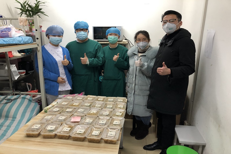 杨萍和刘斌是一对80后小夫妻,有一个6岁的孩子,妻子杨萍在常州纺院团委工作,丈夫刘斌在常州一家公司工作。疫情防控工作启动以来,杨萍一方面按照学校关于疫情防控的各项规定,在家做好家人的防护,同时,在家中认真完成学校团委安排的各项防控任务,做好团委新媒体宣传工作,通过团属宣传阵地传递正能量,及时并准确掌控团属媒体意识形态。疫情期间,他们目睹了一线医护人员、特警、交警们离开需要陪伴的家人,义无反顾奋战在疫情防控第一线;看到学校领导和干部竭尽全力确保校园安全和师生健康,坚守在疫情防控工作第一线;了解到学校很多学生纷纷投身到家乡的防疫工作的。他们感到作为党员夫妻,应该为这些守护人做些什么。杨萍夫妻了解到很多晚上执勤人员忙得无法保证及时吃上一口热饭时,就和父母兄弟商量为他们做上一碗羊肉面。这个想法得到了家人的大力支持,并表示,特殊时期,尽管过程可能很艰难,但也应该尽上一份社会责任。