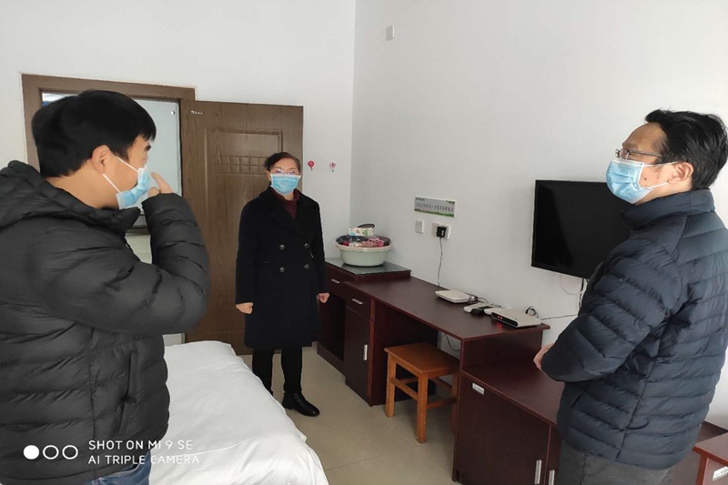 院领导仔细查看了已上墙的管理制度、岗位职责,询问医务人员隔离人员入住流程、医学观察登记,查验了防控物资;走进卧室用手体验新被褥的厚薄和柔软性、向后勤总公司提出要让隔离人员既要吃得饱吃得好、还要吃得有营养的高要求;向学工处了解掌握疫情重点地区学生的健康情况,检查了观察区外围安全警戒设施。