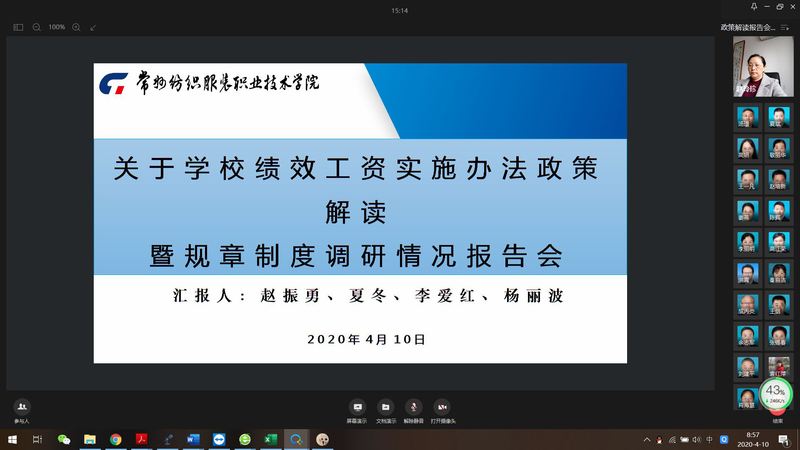 为深化学校人事分配制度改革,推动二级单位绩效工资分配方案尽快实施。同时,为更好地规范和加强学校内部治理,建立并完善规章制度建设体系。4月10日上午,通过企业微信网络直播方式,学校召开了关于绩效工资政策解读暨规章制度调研情况报告工作视频会议。全体中层干部参加了会议。会议由副院长赵玲珍主持。