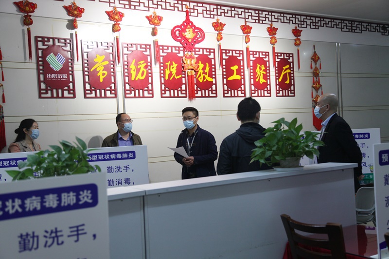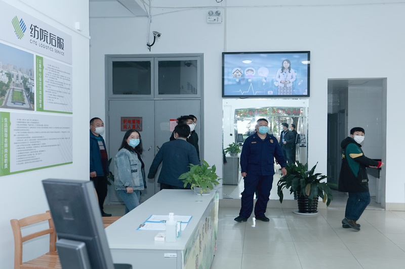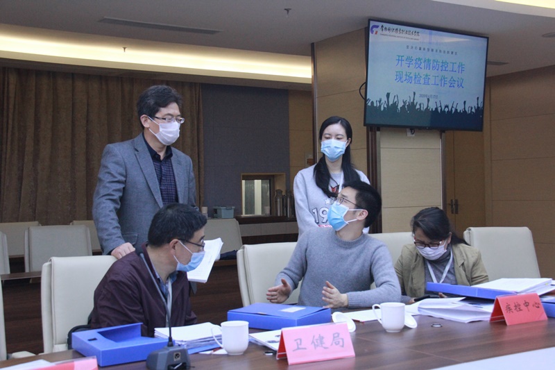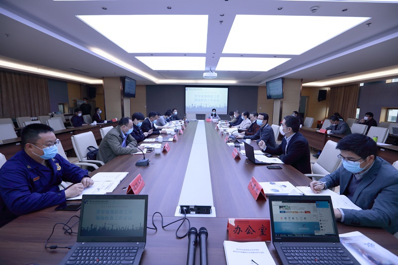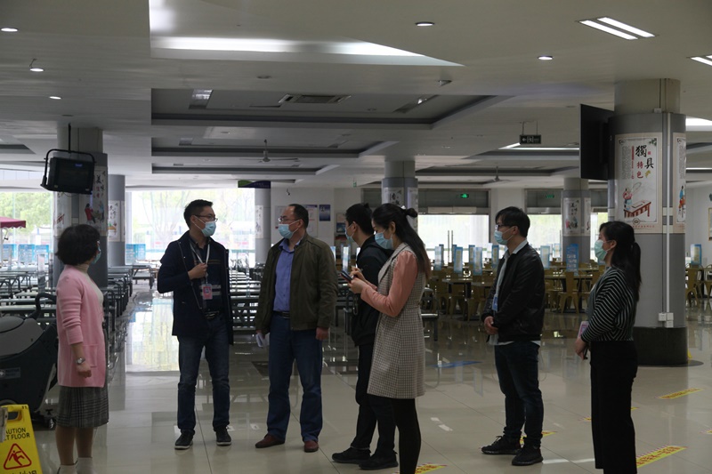 洪霄代表学校向工作组汇报我校联防联控机制、开学返校方案、师生情况摸排及防疫物资准备等防疫工作开展情况,联防联控工作组对照“常州科教城高校开学准备工作验收标准”,对我校疫情防控工作预案制定、应急演练开展、校园清洁消毒、防控条件保障等方面进行了督查。并对我校各门岗、学生食堂、学生公寓、医学隔离观察点等重点场所进行了实地现场查看。工作组对学校的疫情防控和开学准备工作给予了肯定,并提出了整改意见和完善建议。