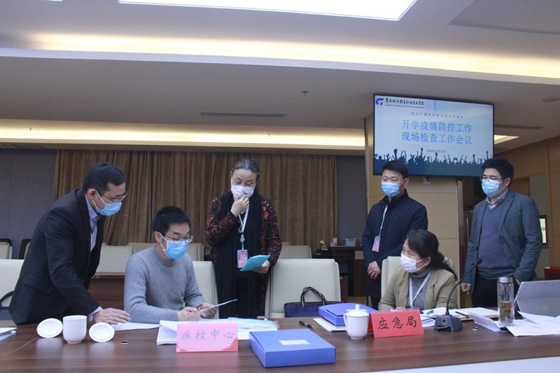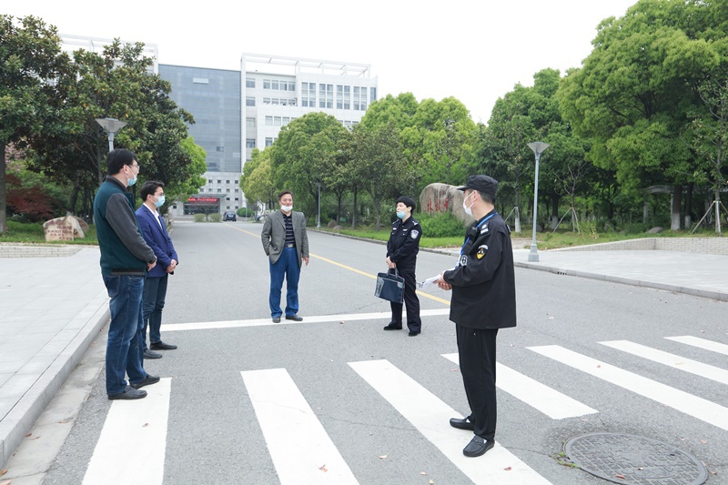 4月17日,常州科教城高校疫情联防联控工作组到我校开展开学疫情防控工作现场检查工作。科教城管委会副主任庄三舵及科教城管委会、武进区公安局、卫健局、市监局、应急局、消防大队等部门人员和专家来校指导。我校党委书记蒋心亚、院长洪霄、副院长赵玲珍、张震宇及相关职能部门负责人陪同检查。