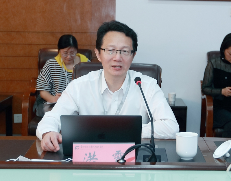 洪霄对来访的科技局各位领导表示热烈欢迎,他介绍了我校近年来科研工作取得的成绩,并指出通过集聚优质社会资源,面向中小微纺织服装企业开展技术创新集成服务,开展纺织科技园、服装科技园、数字创意基地等重点建设提升项目,整合优势资源共同推动地方纺织服装时尚产业和专业共生发展。深入做好“一师一企”服务工作,进一步加强校企深度融合,推动产学研用联动,促进成果产业化,助力常州纺织服装产业转型升级,提升产业链附加值。