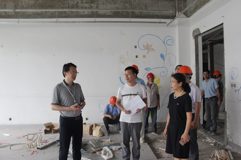 10日下午,洪霄院长调研暑期改造项目施工工地,党政办、后勤保障部领导、相关项目负责人及施工单位负责人随同调研。