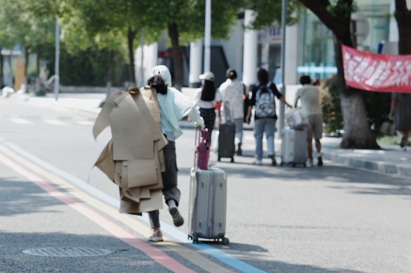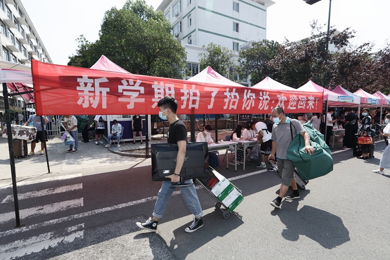 报到各个流程都有明确的指示牌,现场布置贴近学生心理,彰显人文关怀。“‘疫’别八月,樱花路待君归来;美丽的小姐姐,乘风而归,破浪前行;盼望着,盼望着,秋风带你们回家了;新学期拍了拍你说:欢迎回来!”等横幅营造了活泼、温情的返校氛围。