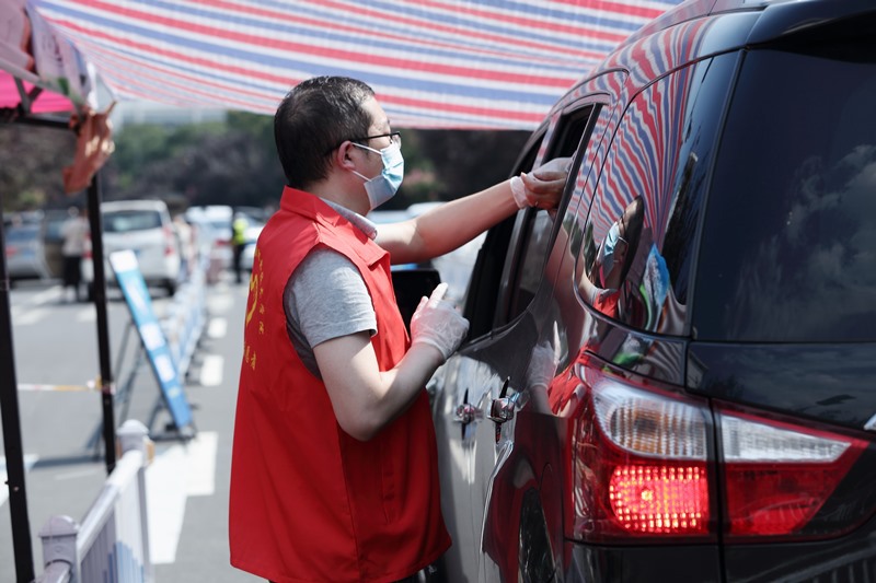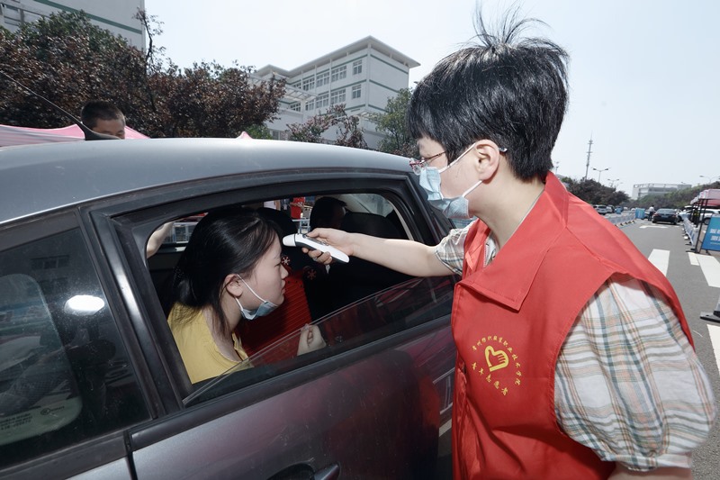 一个党员就是一面旗帜,一个支部就是一座堡垒。机关党总支充分发挥堡垒作用,组建了以党员为主的抗疫先锋服务队,顶着烈日为返校学生提供体温检测、运送行李等贴心服务。