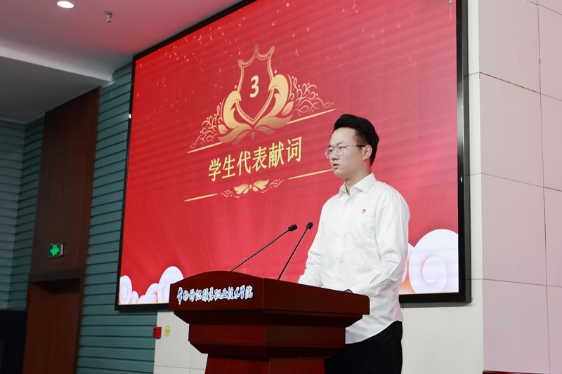 学生代表国贸1931班黄凯同学给老师们送上了节日的祝福,感恩求学路上遇见的每一位兢兢业业诲人不倦的常纺教师。