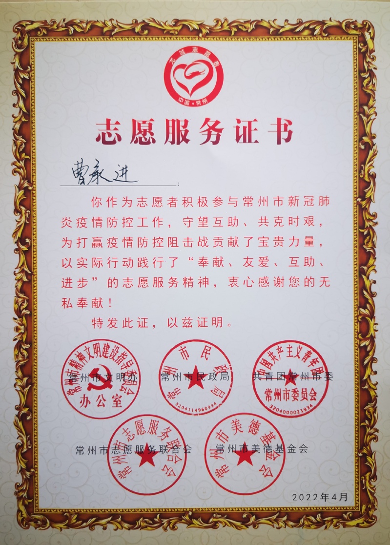 根据政府疫情防控要求,在武进区湖塘镇丰乐社区做一名普通的志愿者。