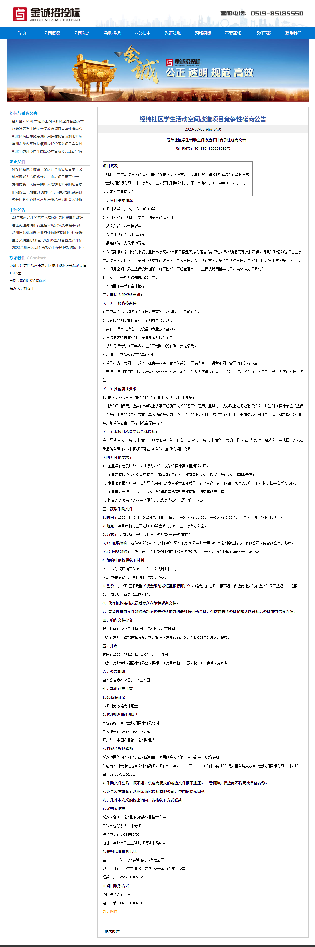 【采购公告】经纬社区学生活动空间改造项目竞争性磋商公告