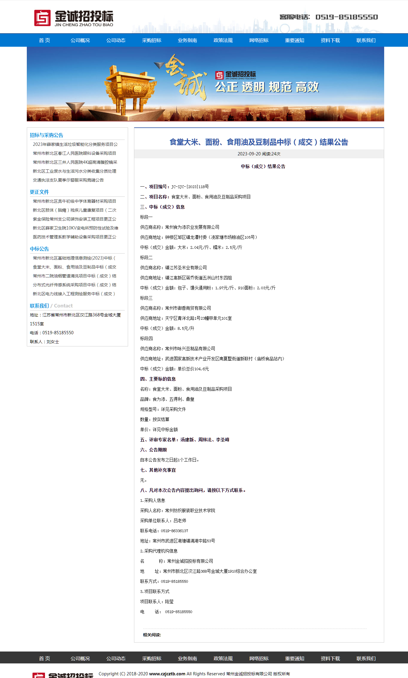 【成交公告】食堂大米、面粉、食用油及豆制品成交结果公告
