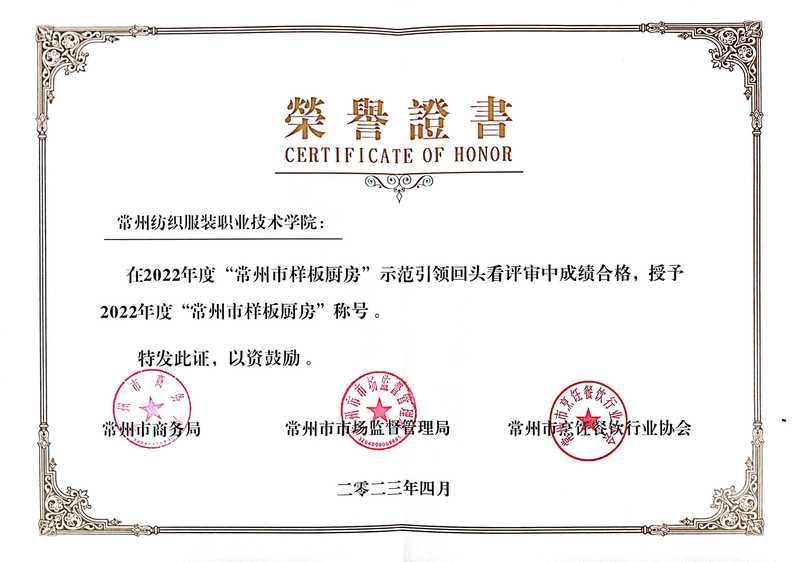 健康餐饮。充分调研师生需求,倡导光盘行动,推广健康餐饮理念,推广执行自助称重就餐模式,实施半份菜(饭)、小份菜(饭)以及简约型套餐、轻食类套餐,营造节约健康就餐氛围。实现泔水量下降70%的重大节约型目标。学校获得江苏省“优秀团餐企业”、江苏省高校后勤系统烹饪职业技能竞赛团体“一等奖”、江苏省团餐烹饪技能大赛团餐优秀奖、被授予“常州市样板厨房”称号。