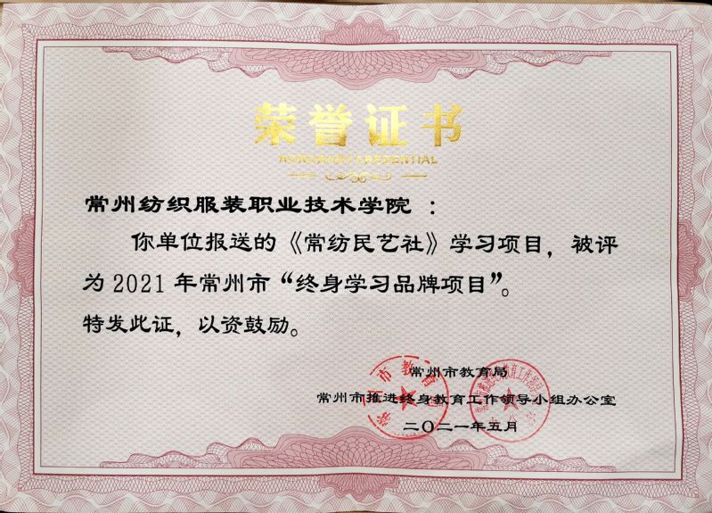 《常纺民艺工作坊》入选江苏省社区教育特色品牌项目及常州市“终身学习品牌项目”
