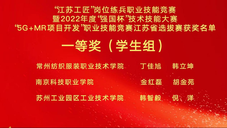 江苏省5G+MR资源开发职业技能大赛中喜获一等奖第一名