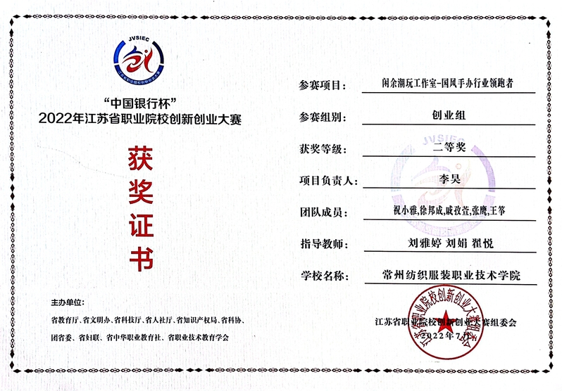 人才培养注重“技艺融合、赛教融合、专创融合”,师生积极参与各类技能大赛、创业大赛、设计竞赛、国际交流,屡创佳绩。在2021年第十七届挑战杯大学生科技作品竞赛红色专项赛中获全国一等奖1项;近几年,在全国高校数字艺术设计大赛中获一等奖、二等奖、三等奖累计20多项;在江苏省高职院校技能大赛动漫设计与制作、园林景观设计与施工、艺术设计(平面设计+室内艺术设计)、建筑装饰技术应用,虚拟现实(VR)设计与制作等赛项中获一等奖、二等奖、三等奖累计近30多项。在江苏省大学生艺术展演、江苏省“互联网+”大学生创新创业大赛、紫金奖中国(南京)大学生设计展、江苏省高校艺术教师基本功展示等赛事中获得一等奖、二等奖等奖项累计30多项。