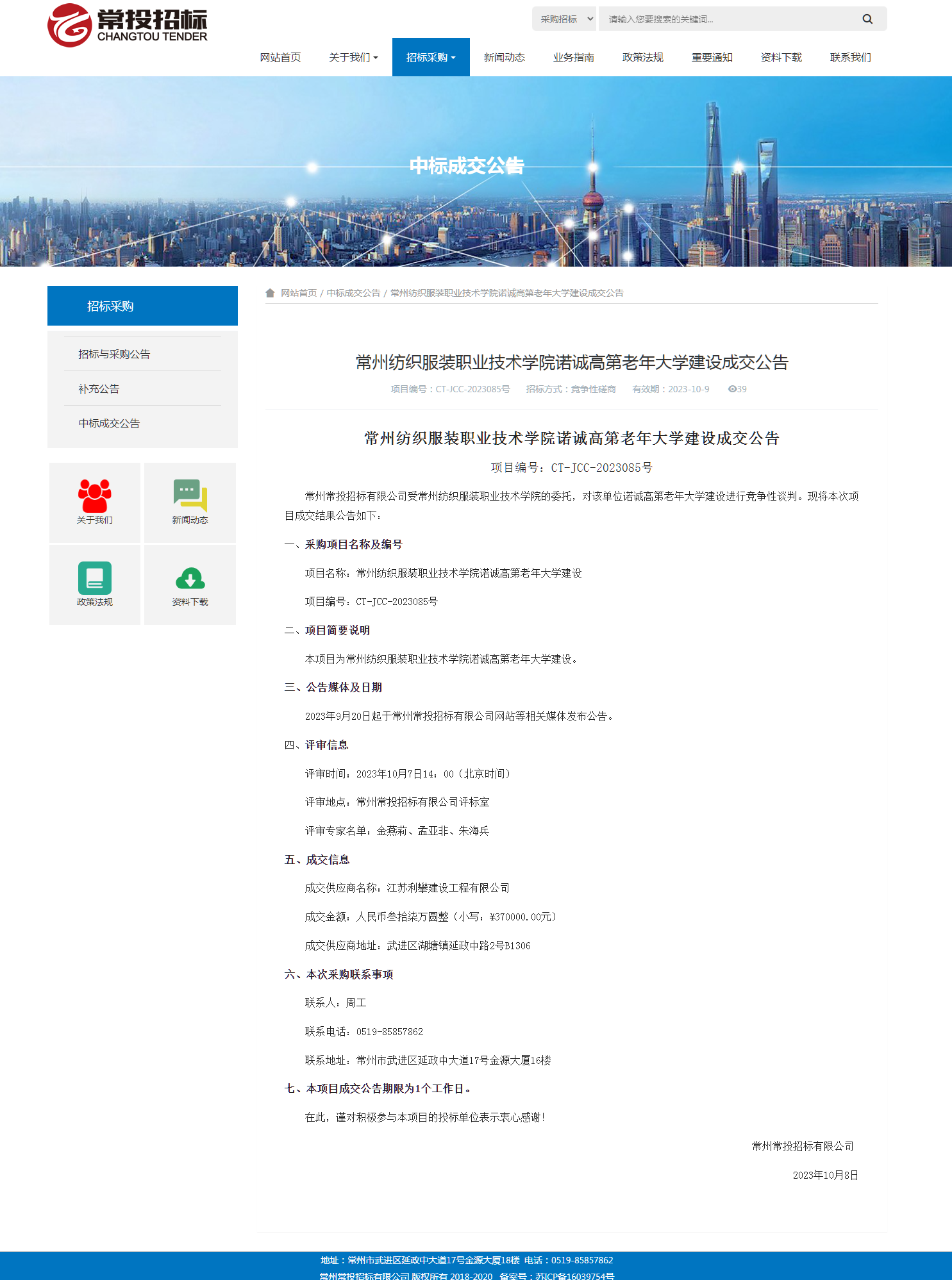 【成交公告】诺诚高第老年大学建设项目成交公告