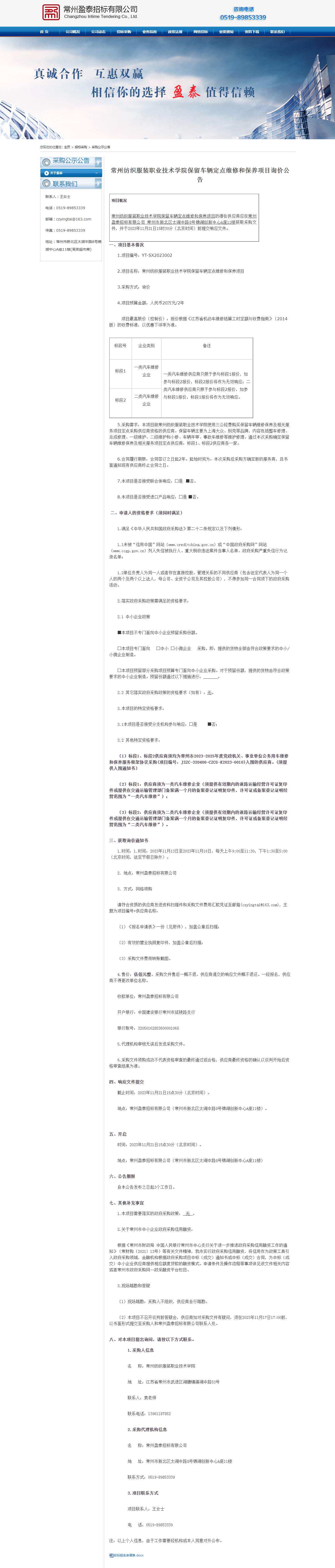 【采购公告】保留车辆定点维修和保养项目询价公告