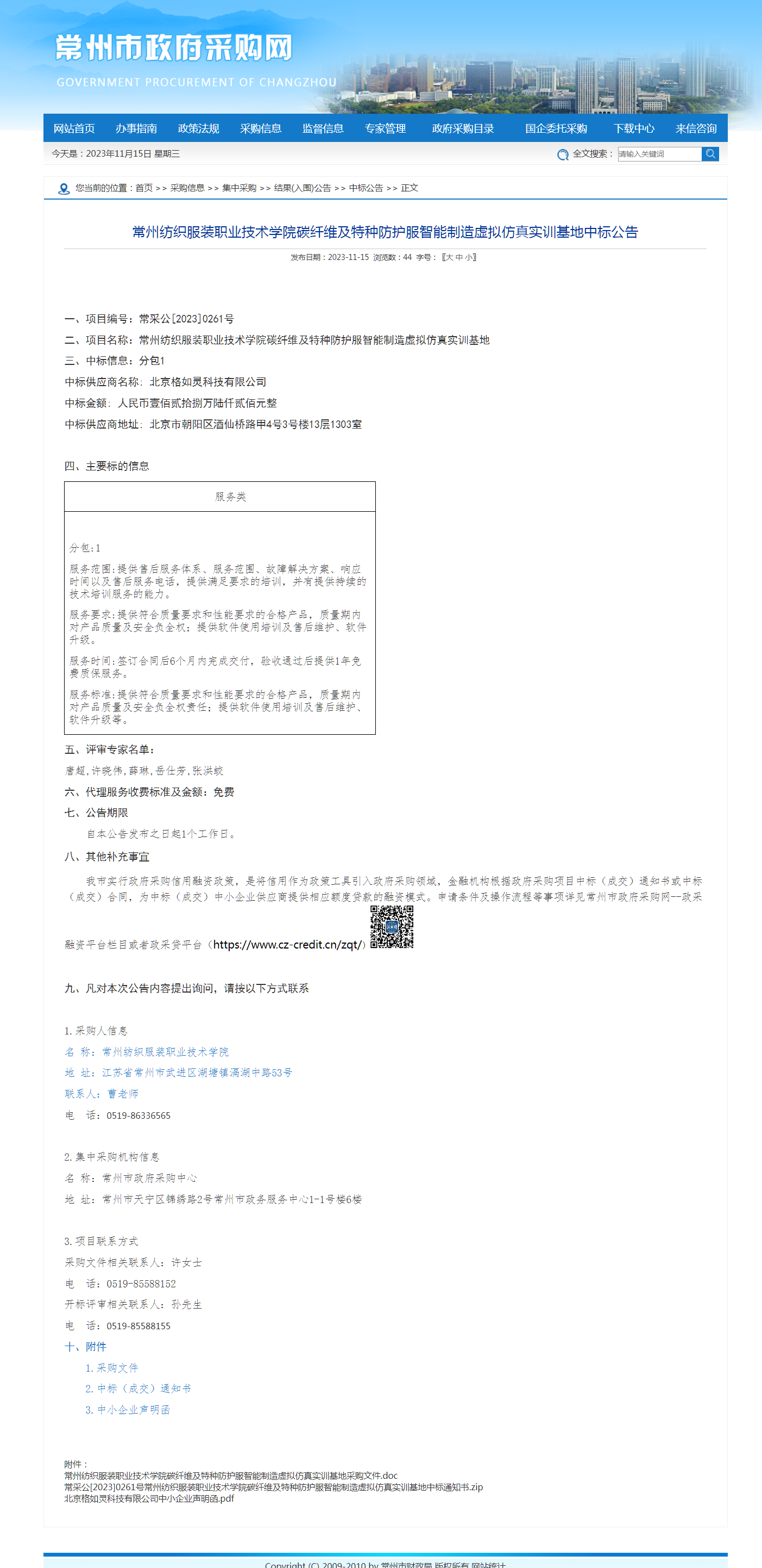 【中标公告】碳纤维及特种防护服智能制造虚拟仿真实训基地中标公告