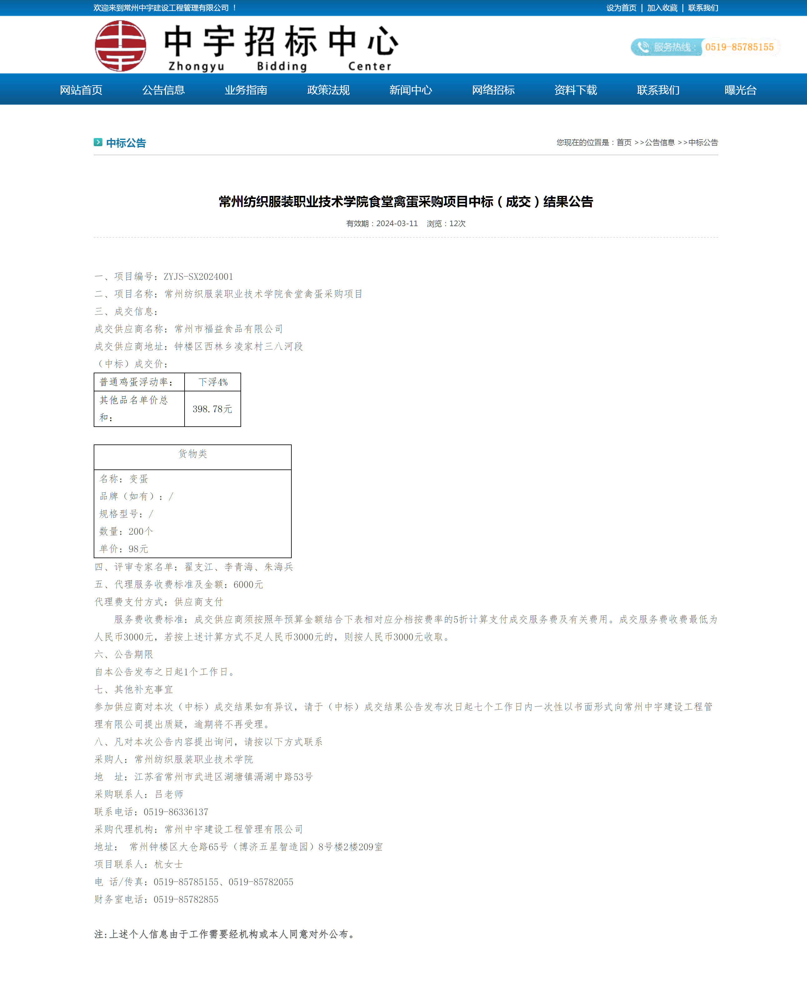 【成交公告】食堂禽蛋采购项目成交结果公告