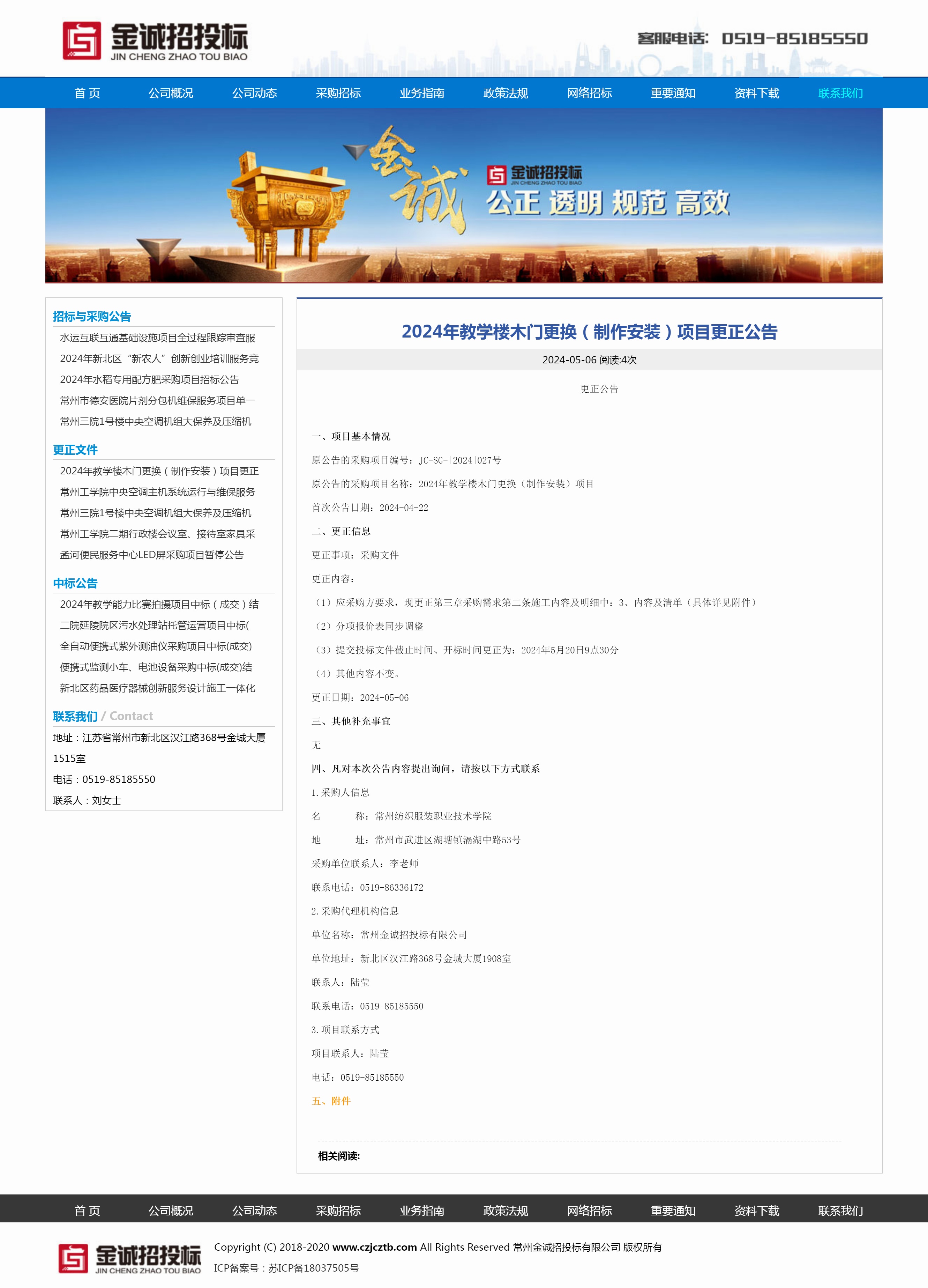 【更正公告】2024年教学楼木门更换(制作安装)项目更正公告