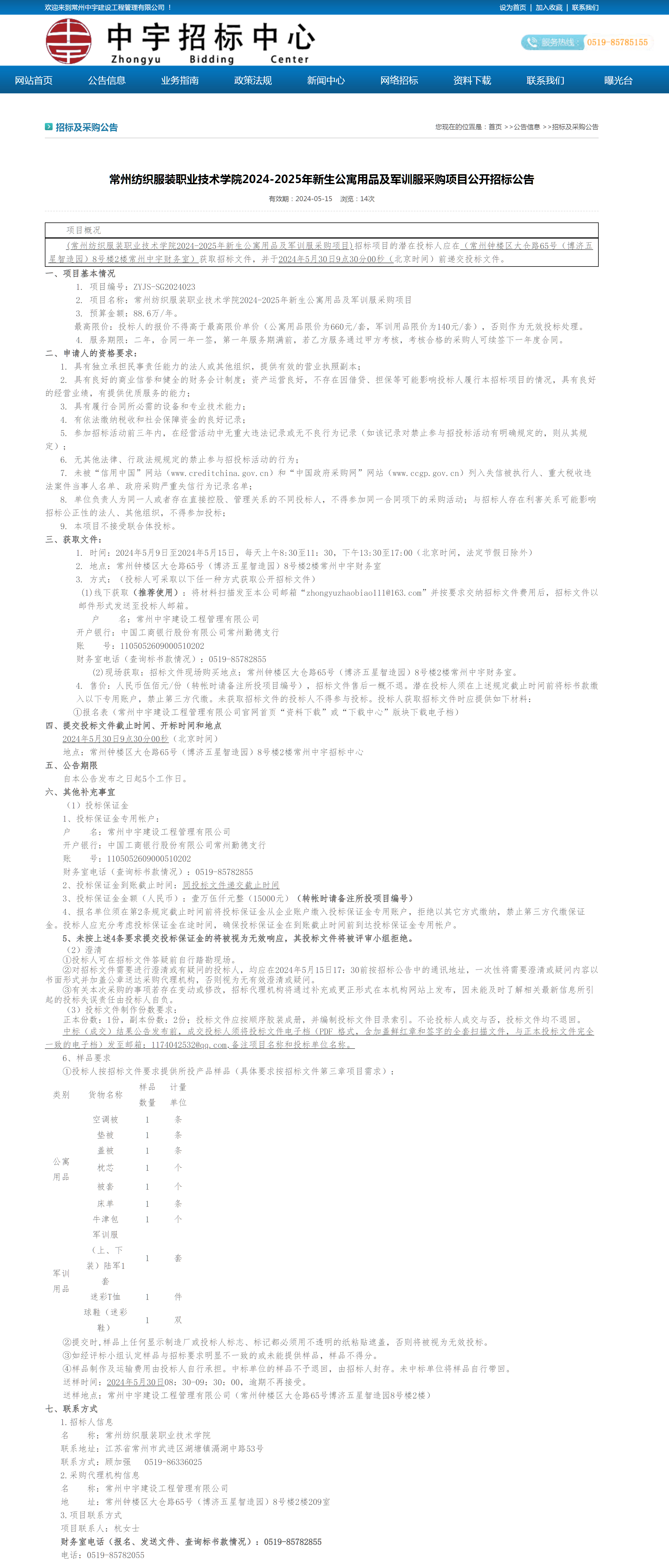 【招标公告】2024-2025年新生公寓用品及军训服采购项目公开招标公告