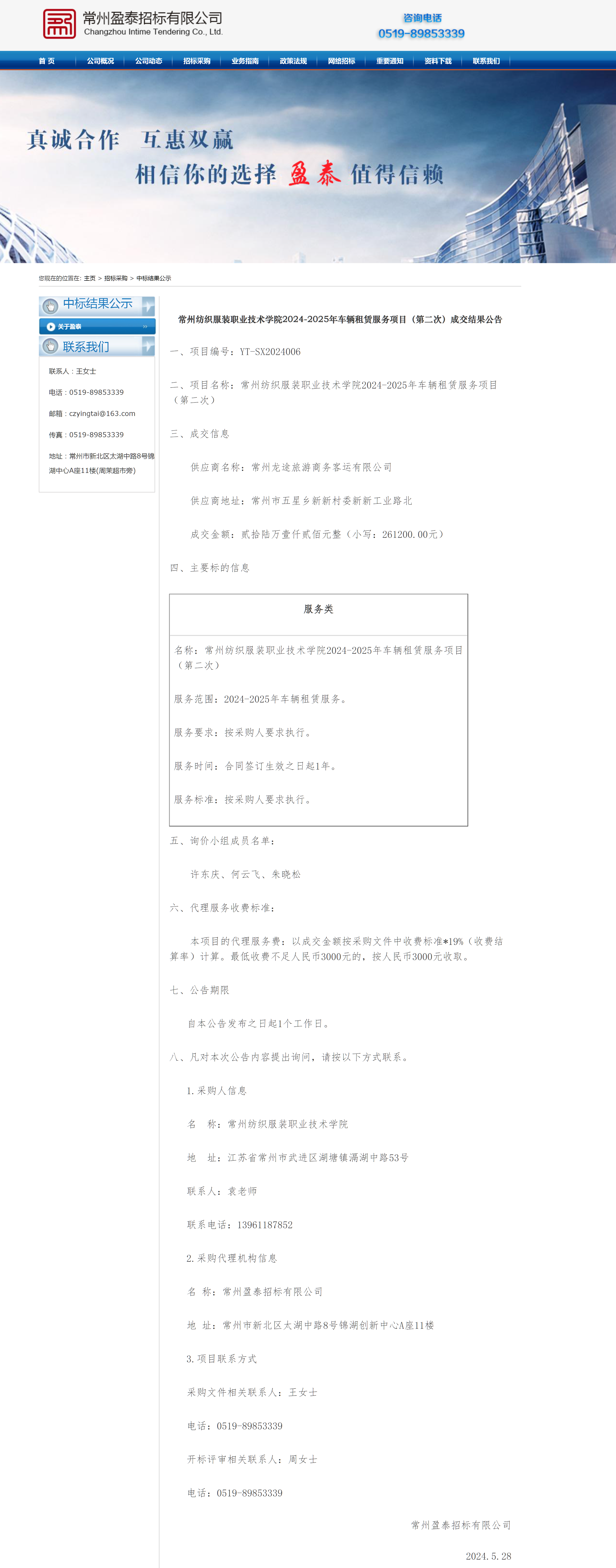 【成交公告】2024-2025年车辆租赁服务项目成交结果公告
