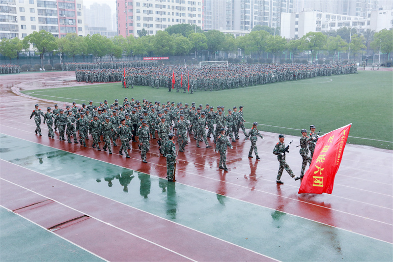 最后,洪霄作总结讲话。他首先对承训部队官兵的辛勤付出表示衷心的感谢,并对全体新生在军训中的优异表现给予了高度评价。他强调,军训不仅是一次身体上的锻炼,更是一次心灵上的洗礼。通过军训,同学们从中学会了自律、坚持和不轻言放弃的品质,这些将伴随他们走过大学三年乃至整个人生旅程。他希望同学们能够将军训中学到的宝贵品质带入到今后的学习和生活中去,带着军训中学到的精神,勇敢地迎接未来的挑战,书写属于自己的精彩篇章。
